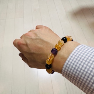 黒水晶・黄水晶・紫水晶 この3色で作ってもらった👍