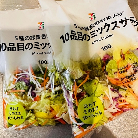 この2袋で3回分です。ドレッシングは「黒酢玉ねぎドレッシング」only👍