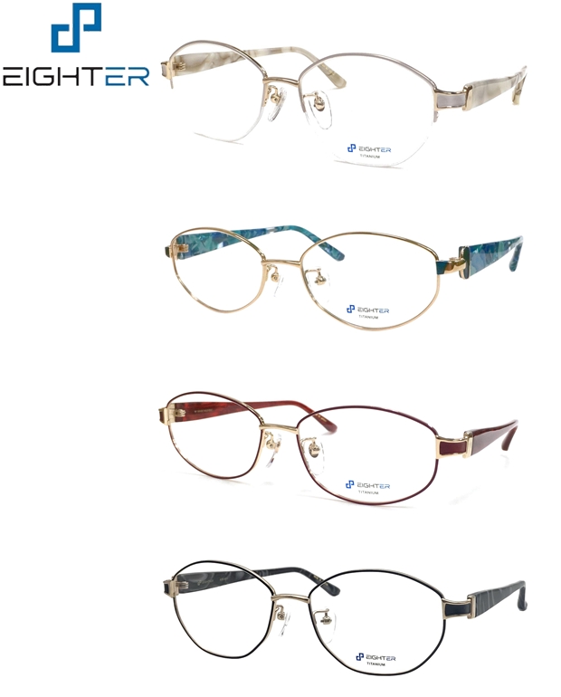 | カザールの日本正規代理店(株)エイトオプティクのオリジナルフレームです。発色の良い生地を使ったテンプルと、遠近両用に最適な上下幅が大きめの玉形が特徴です。 |