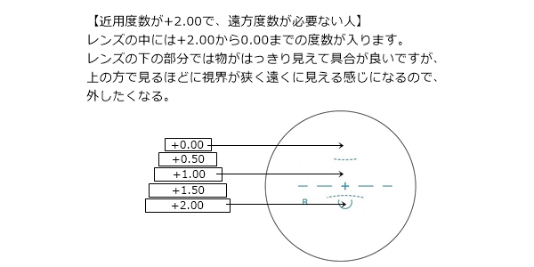 | 【50代女性の例】コンタクトレンズの上からかける乱視を入れた老眼鏡 |